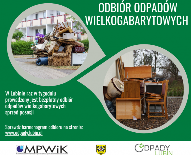 Wystaw gabaryty przed dom – to naprawdę proste! 06-11-2025 12:58 Nie musisz wozić starych mebli czy zużytego sprzętu na PSZOK! W Lubinie raz w tygodniu realizowany jest bezpłatny odbiór odpadów wielkogabarytowych sprzed posesji – wystarczy, że wystawisz je w odpowiednim dniu. Sprawdź harmonogram odbioru na stronie: www.odpady.lubin.pl Znajdziesz tam dokładne terminy odbioru gabarytów dla swojego rejonu miasta. Co możesz wystawić przed dom? stare meble (szafy, krzesła, stoły, wersalki), dywany, wykładziny, materace, rowery, wózki dziecięce, żaluzje i inne duże przedmioty z wyposażenia domu. Pamiętaj, by nie wystawiać odpadów budowlanych, gruzu, opon czy odpadów niebezpiecznych – te należy oddawać w Punkcie Selektywnego Zbierania Odpadów Komunalnych (PSZOK). Dlaczego warto korzystać z odbioru sprzed domu? · To wygodne – nie musisz organizować transportu. · To bezpieczne – odpady zostaną odebrane w sposób zgodny z przepisami. · To porządek w mieście – wspólnie dbamy o czysty Lubin! Nie czekaj – wystaw swoje gabaryty przed posesję zgodnie z harmonogramem i pozwól, by zajęli się nimi profesjonaliści. Dzięki temu unikniemy kolejek w PSZOK-u i utrzymamy porządek w całym mieście. Harmonogram odbioru znajdziesz tutaj: www.odpady.lubin.pl/Odbior-odpadow/Harmonogram%20odbioru%202025